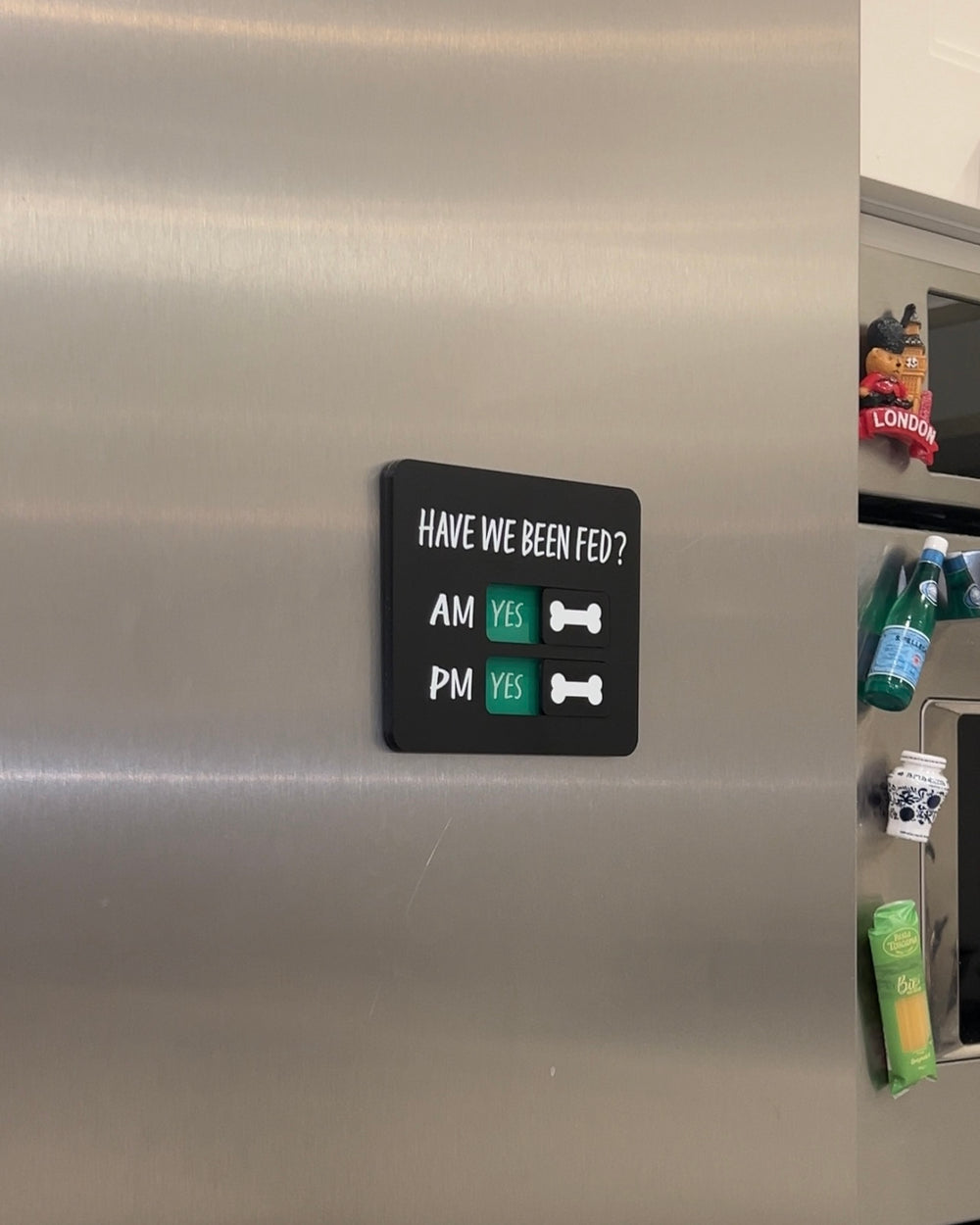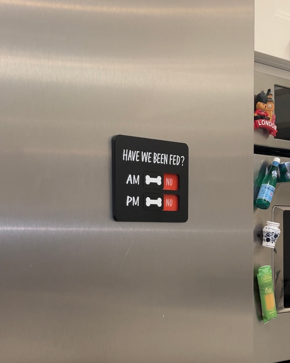 - FedFlip - Magnetic Feeding Reminder - Sleek and compact design effortlessly blending into furniture such as the fridge, dishwasher, and cabinet